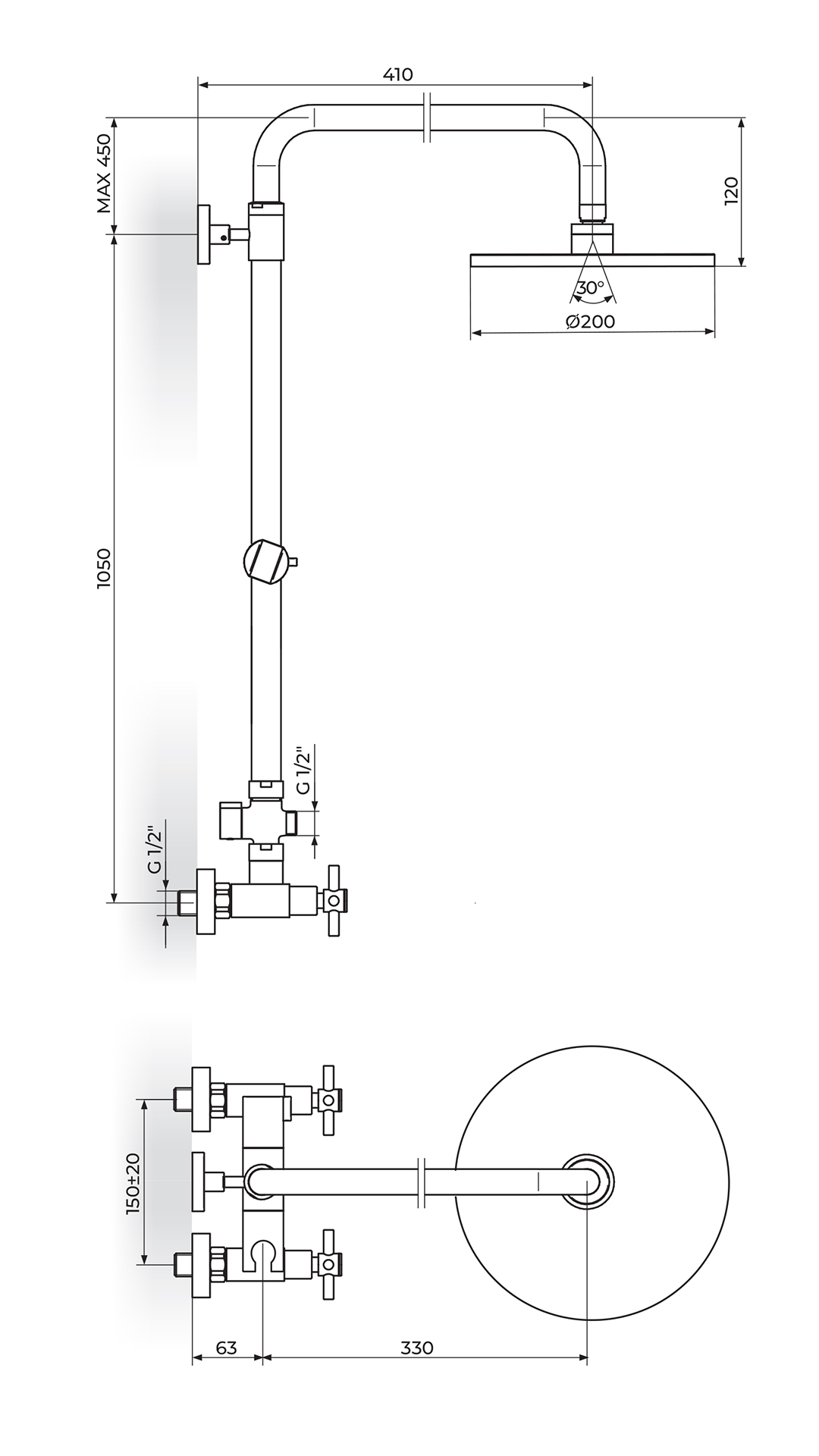 • Zglobna tuš ruža D. 200mm – PTRUSP3
