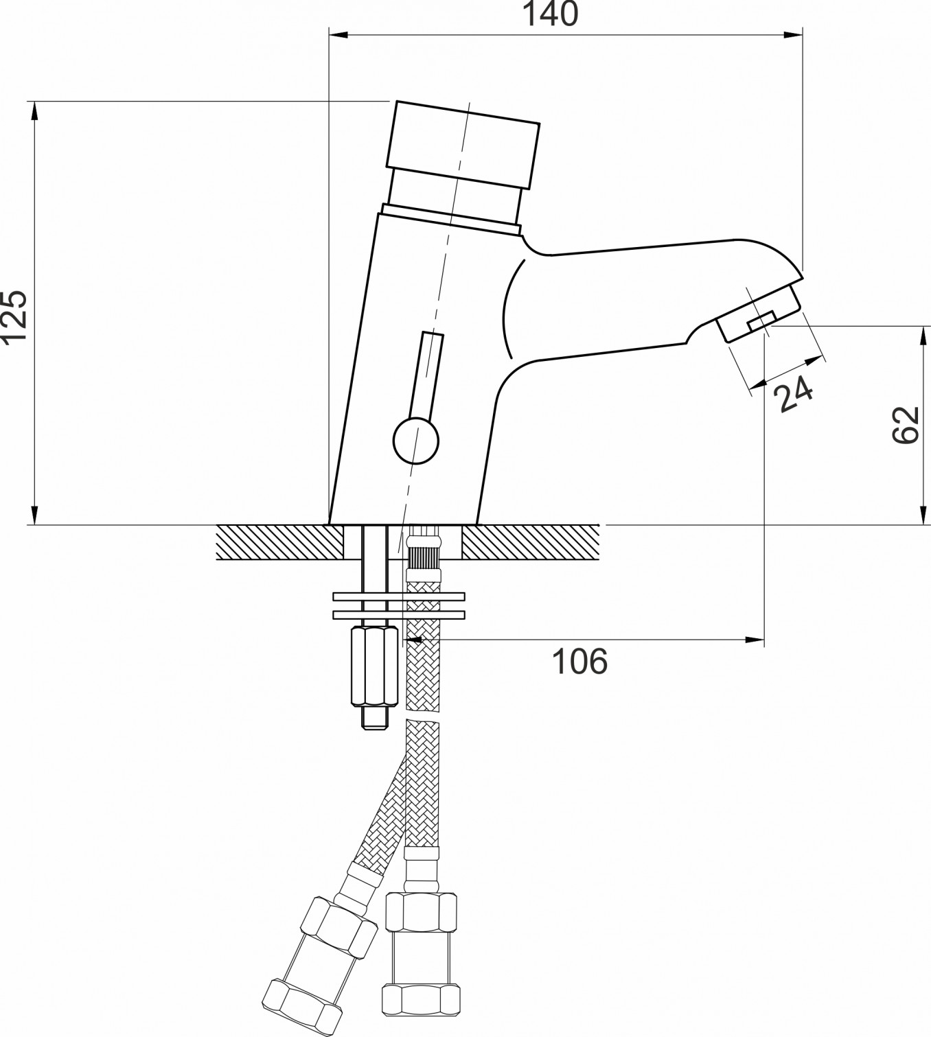 Baterija za lavabo MINOTTI potisna ravni izliv T/H