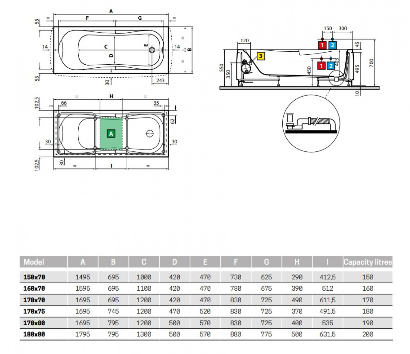 Kada NOVELLINI CALYPSO 180×80 sa oblogom, jastukom i odlivno-prelivnom garniturom