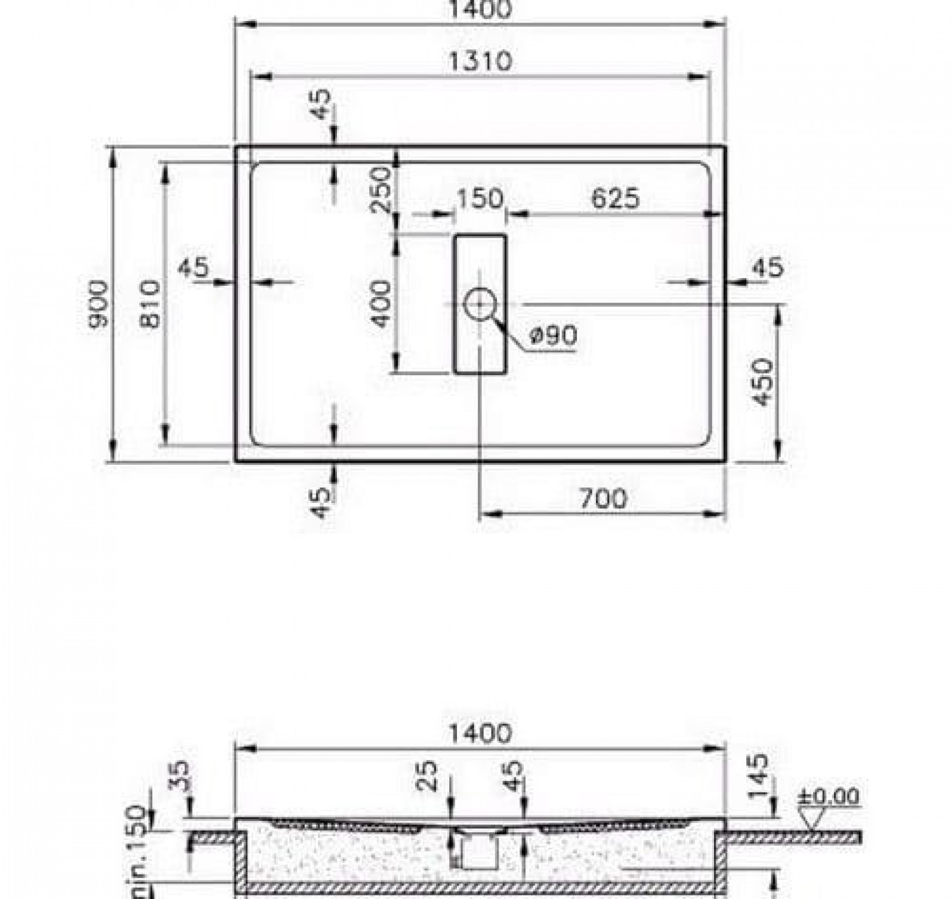 Tuš kada VITRA SLIM FLAT 140x90cm