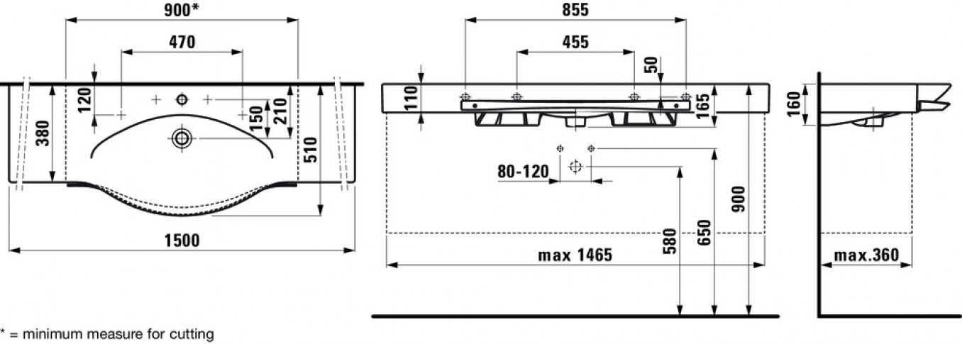 Lavabo Laufen PALACE 150X51 sa drž.peskira