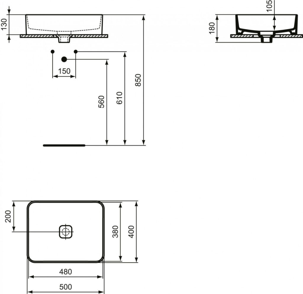 Lavabo nadgradni IDEAL STANDARD STRADA II 50X40 četvrtasti
