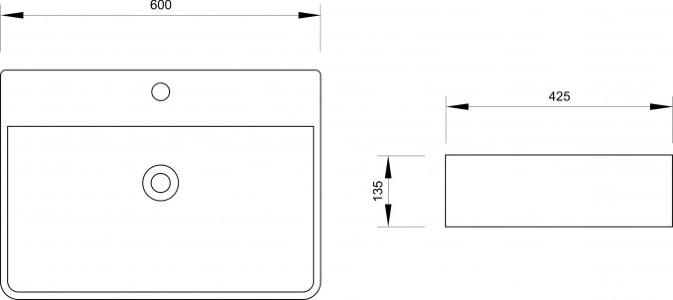 Lavabo nadgradni MINOTTI 600x425x135 sa otvorom za slavinu mat crni