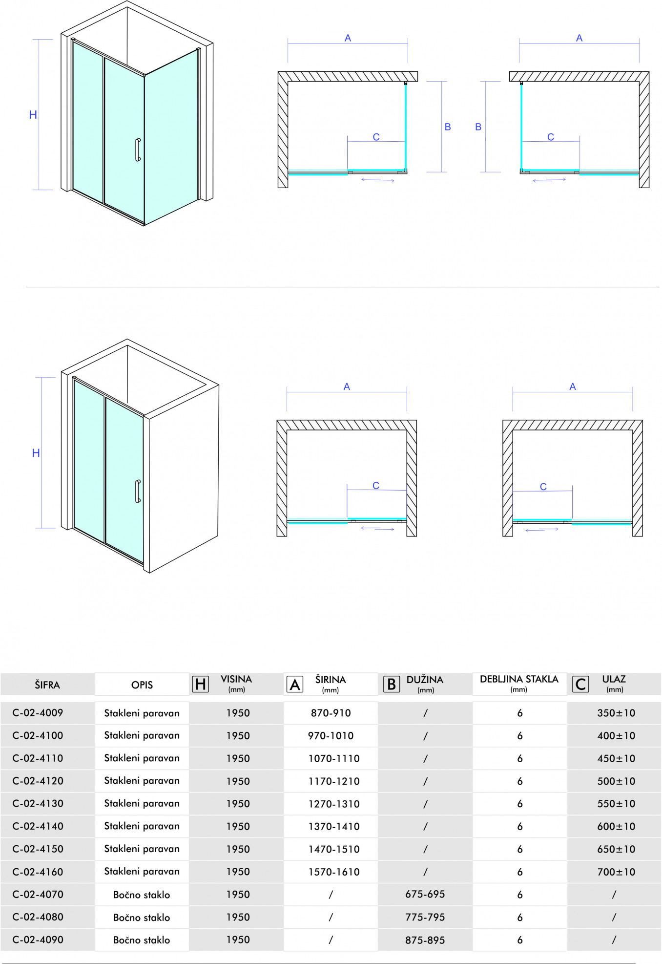 Stakleni paravan COPEN ATLAS 150x195cm staklo 6mm providno