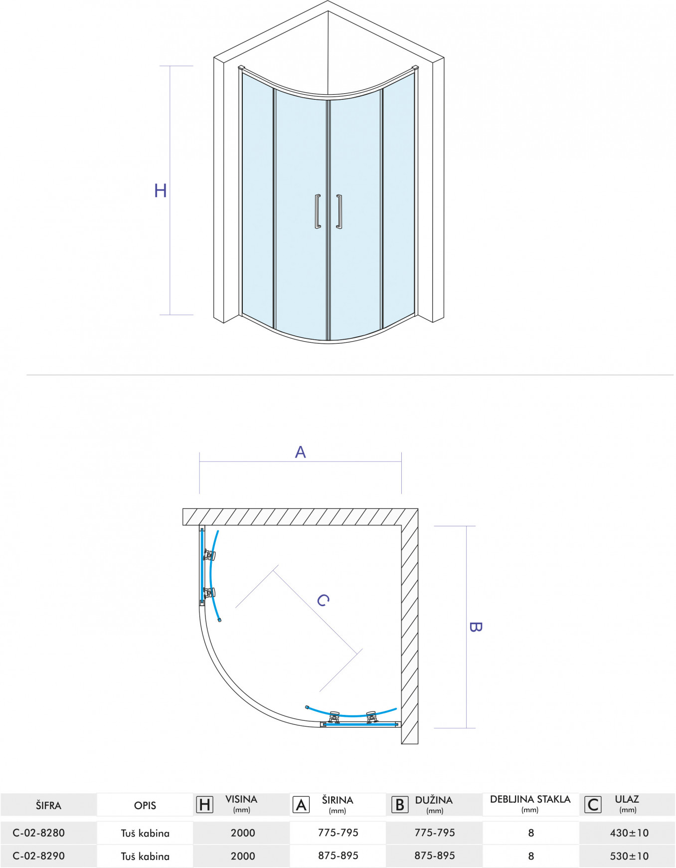 Tuš kabina COPEN STAR R90x200cm staklo 8mm providno