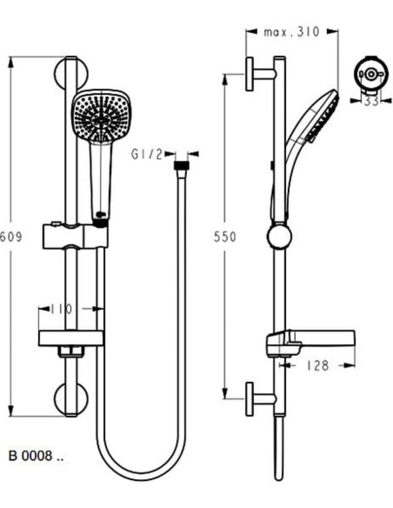Klizna šipka IDEAL STANDARD IDEALRAIN CUBE M 3F 600mm set