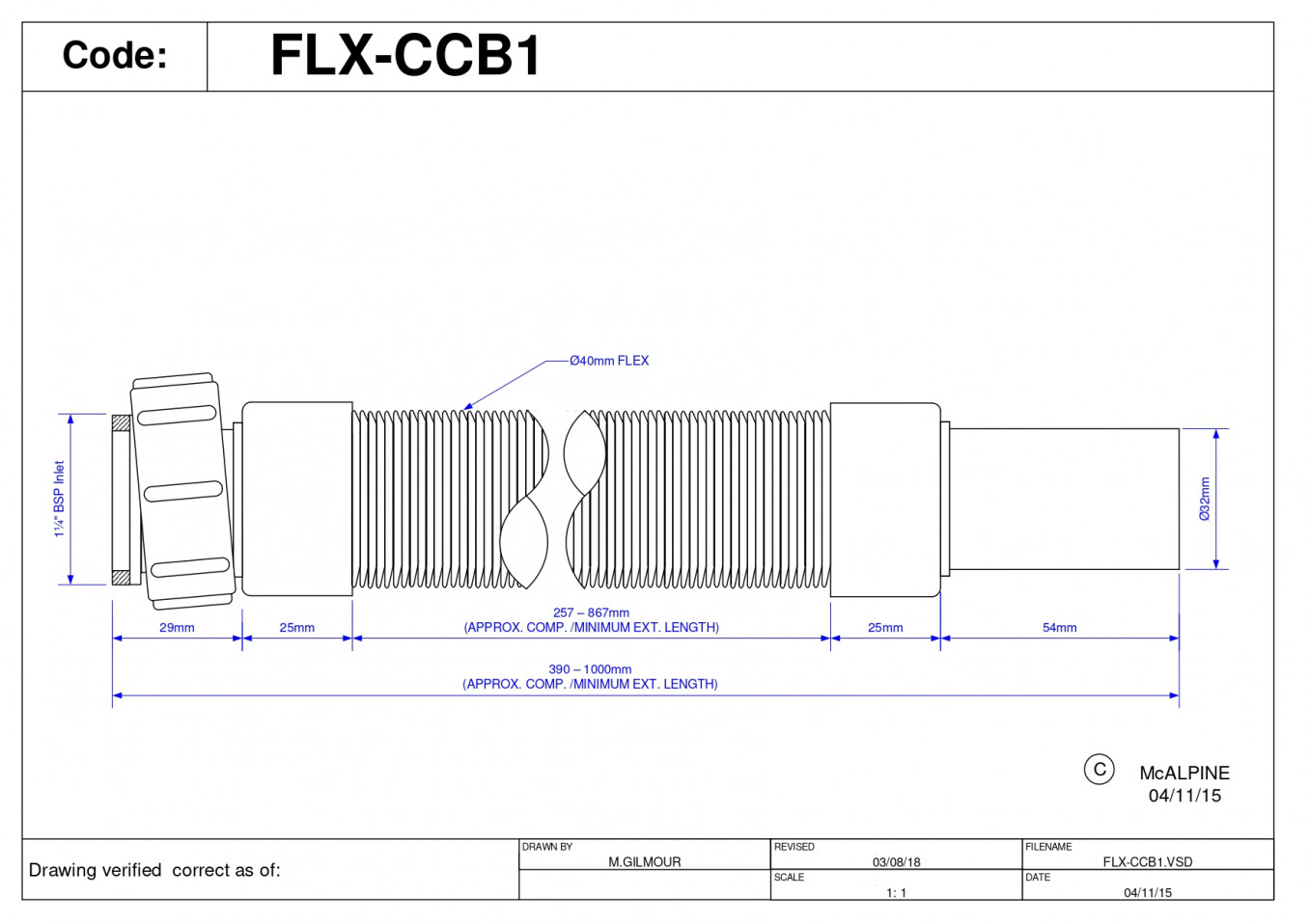 Sifon fleksibilni McALPINE 5/4 fi32 480-1000mm