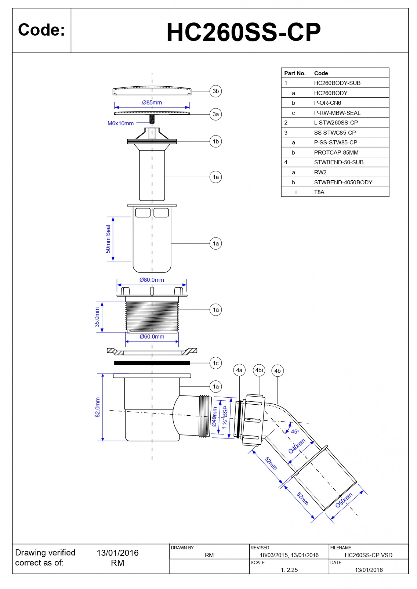 Sifon za tuš kadu McALPINE duboki fi60 kapa 85mm