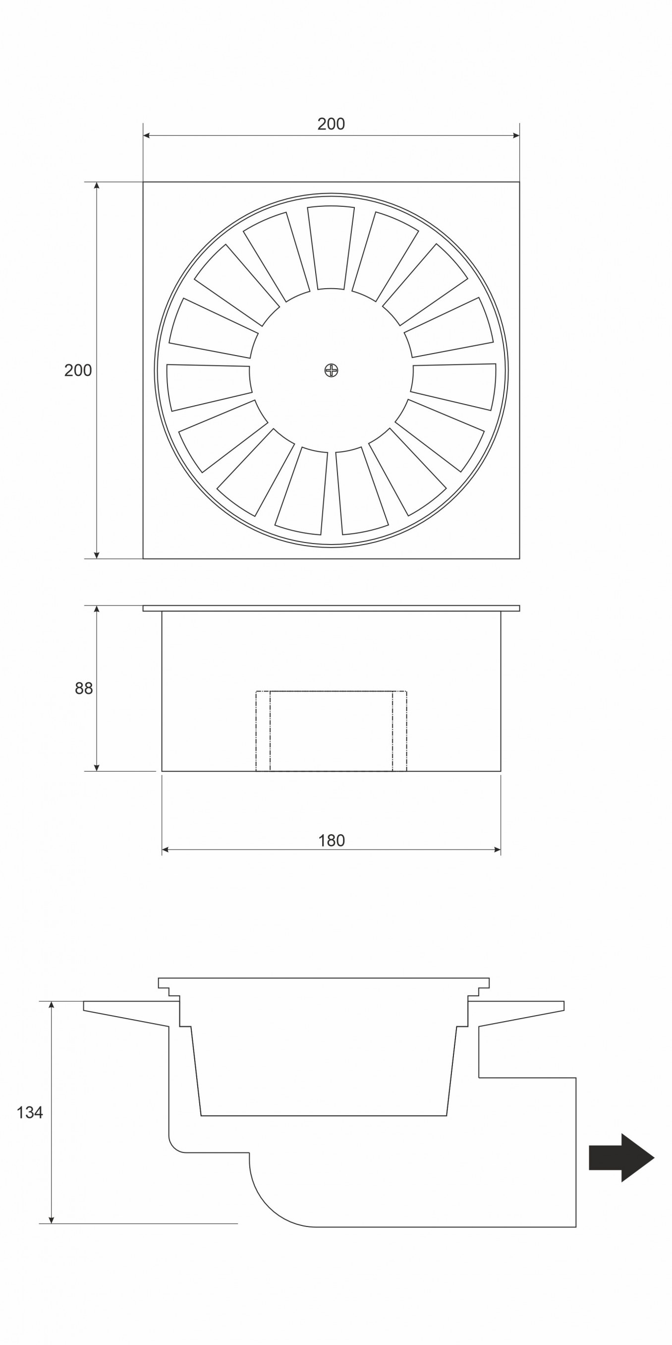 Revestech Sumi 56 20×20 je slivnik za spoljašnju odvodnju vode na većim terasama, garažama i ravnim krovovima sa horizontalnim izlazom fi 90 mm , sekundarnom drenažom vode i fabrički povezanom hidroizolacionom membranom dimenzija 75 cm x 75cm.