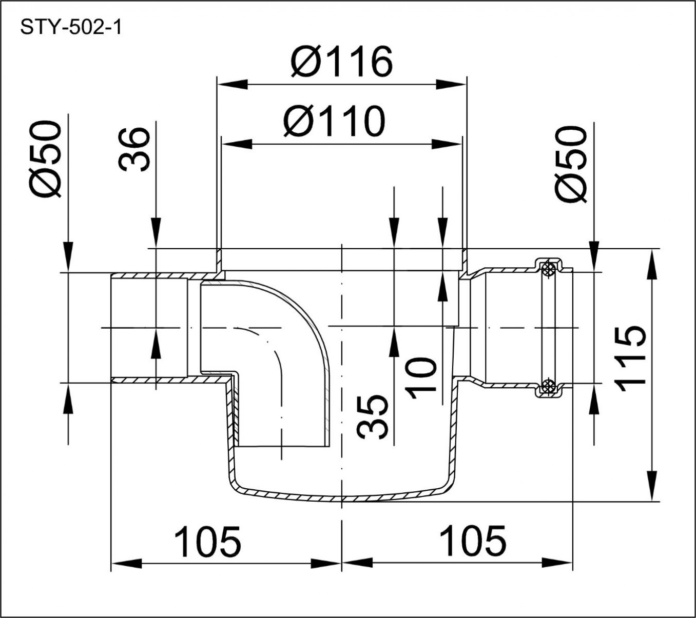 Slivnik STYRON horizontalni prolazni fi50